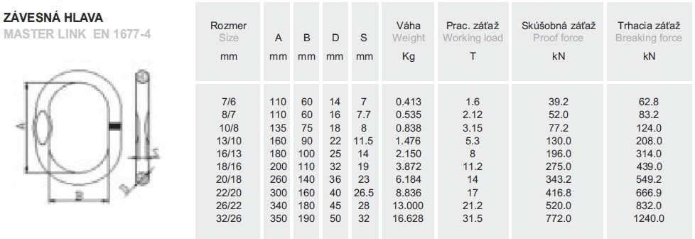 Závesné oko pre jednopramenné lanové závesy. Veľkosť v závislosti od nosnosti a prevedenia závesu, v prípade neštandardného prevedenia (veľký hák) je potrebné upozorniť vopred.